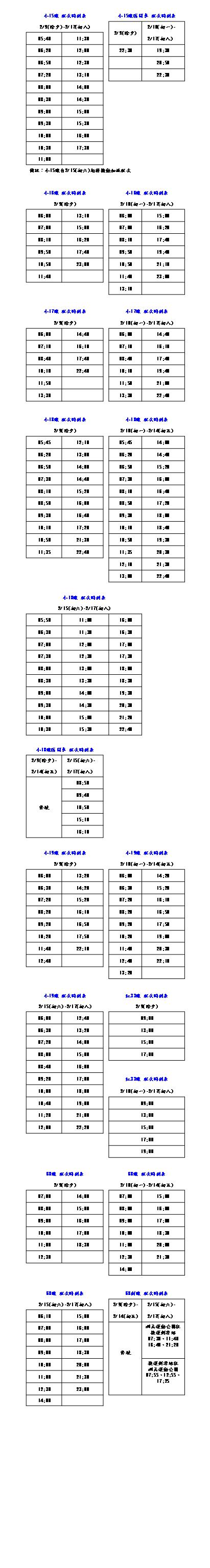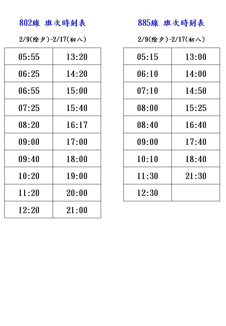 首都客運股份有限公司 102年春節期間班次一覽表 |