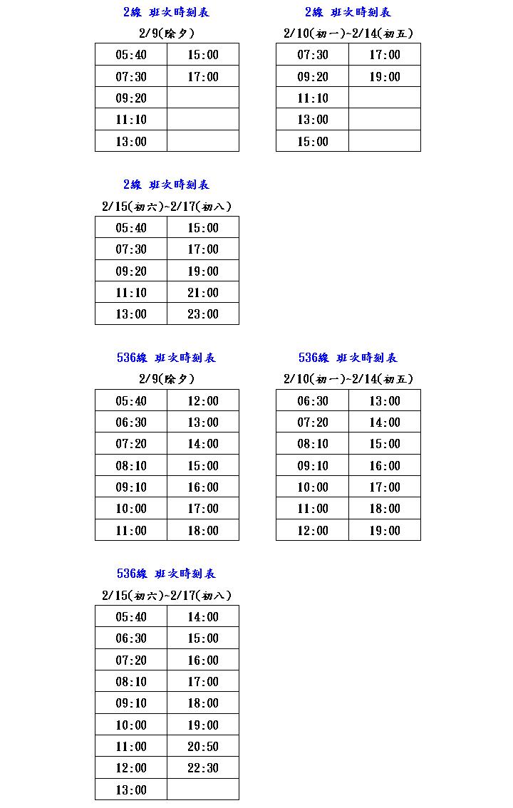 2 | 參閱發車時刻表 | 依例假日班次發車 | ||||||||||||||||