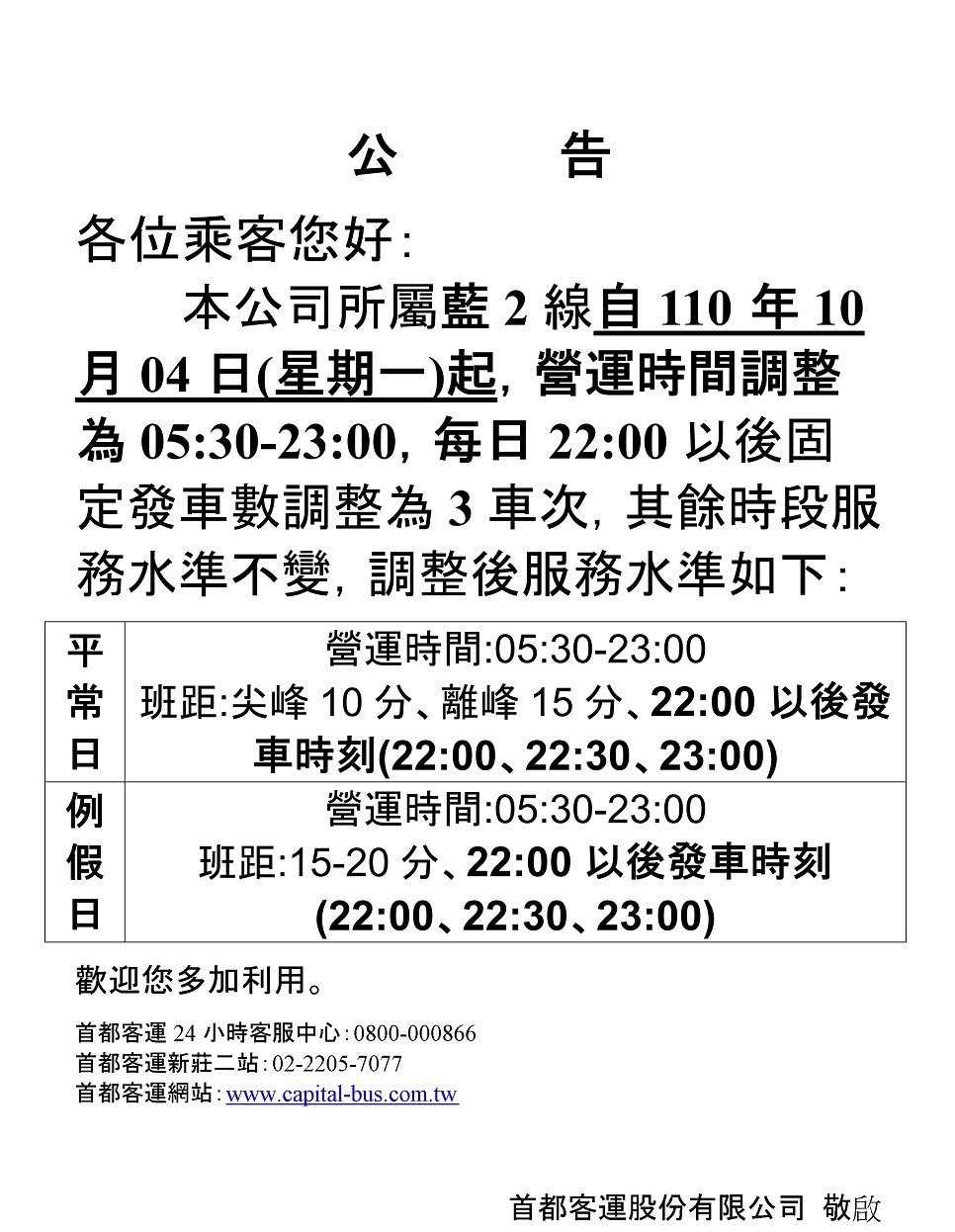 首都客運客服中心(24小時全年無休)免付費電話:0800-000-866