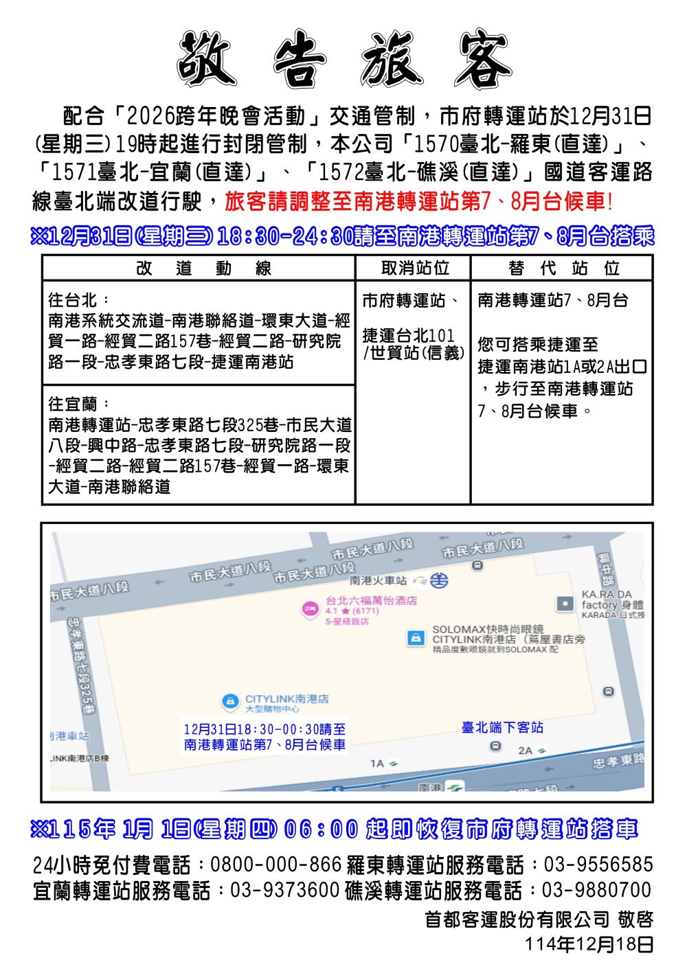 首都客運客服中心(24小時全年無休)免付費電話:0800-000-866