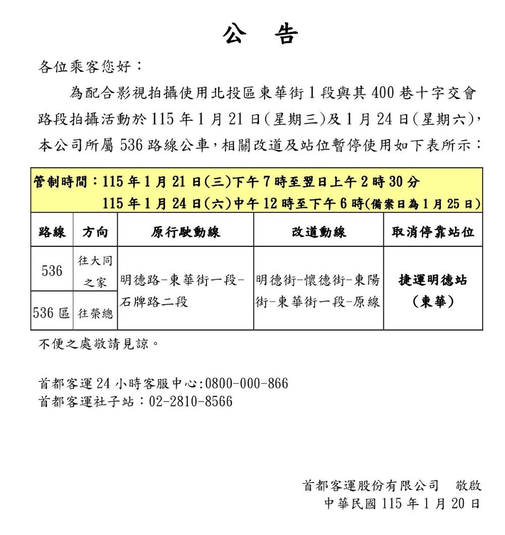 首都客運客服中心(24小時全年無休)免付費電話:0800-000-866
