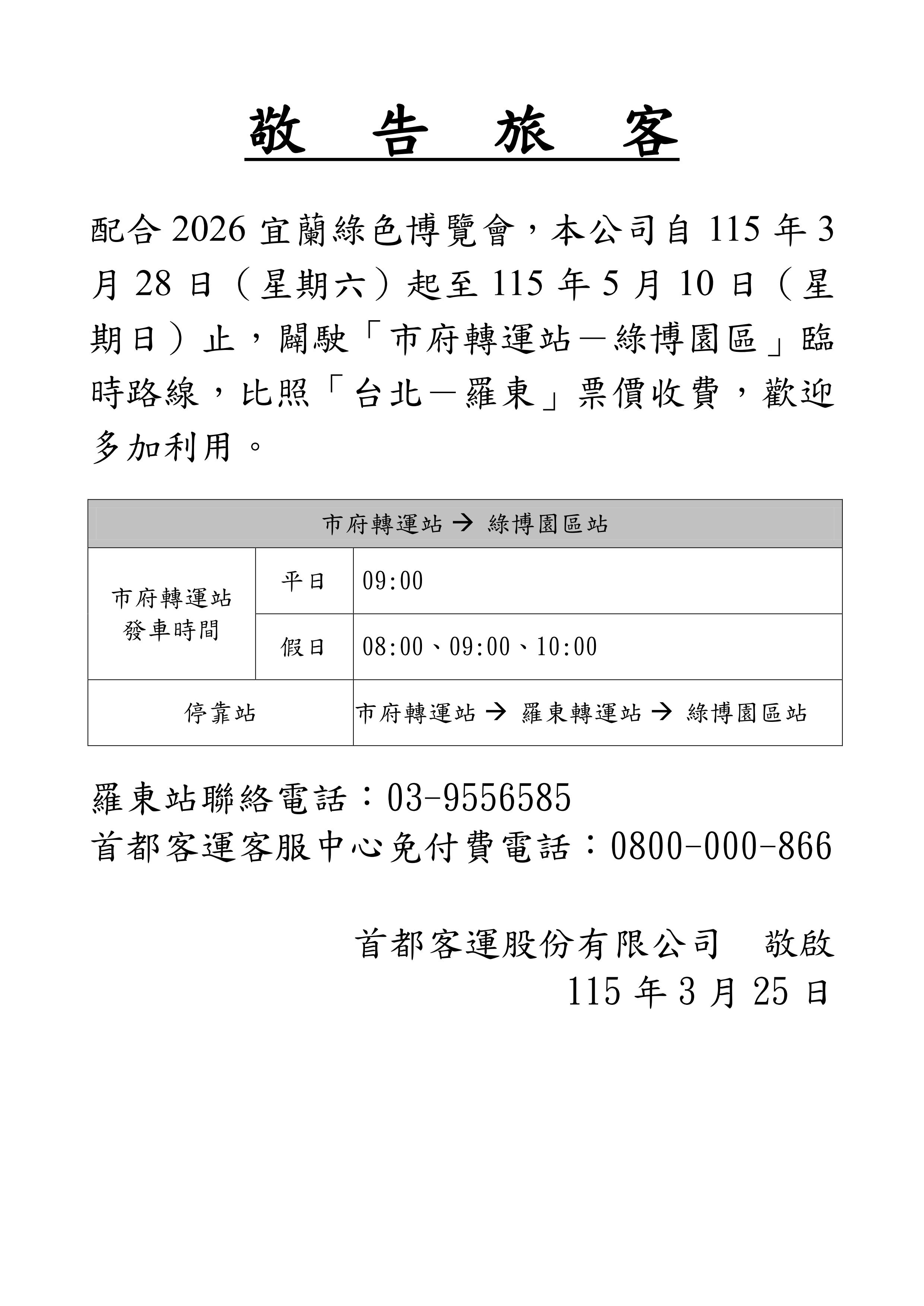 首都客運客服中心(24小時全年無休)免付費電話:0800-000-866