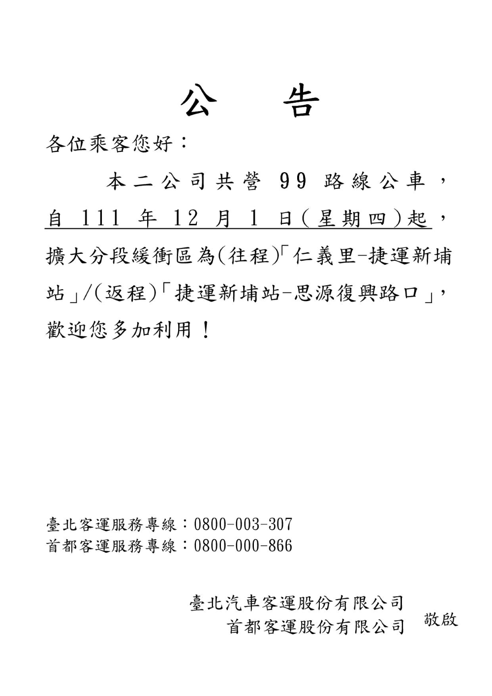 首都客運客服中心(24小時全年無休)免付費電話:0800-000-866