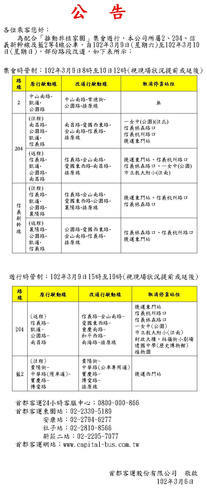 首都客運客服中心(24小時全年無休)免付費電話:0800-000-866